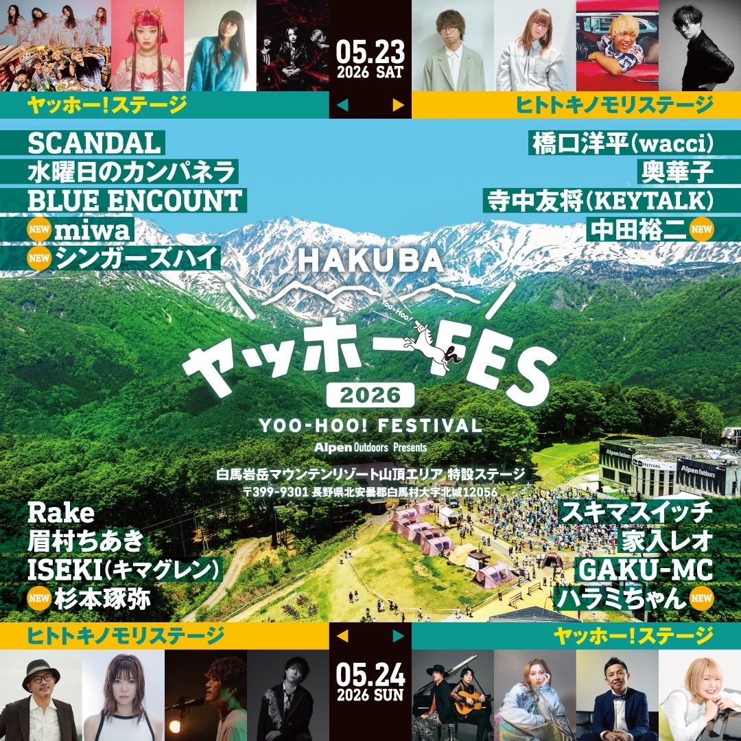 アルペンアウトドアーズ プレゼンツ HAKUBA ヤッホー! FESTIVAL 2026 出演決定!